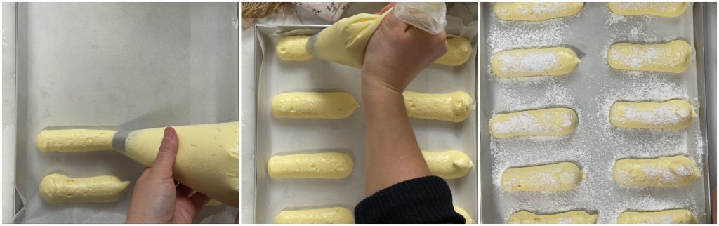Caporali cookies are very soft and fluffy, unlike savoiardi which are more crumbly. To achieve the typical caporali consistency, it’s important to whip the yolks and the whites separately, then combine them with a few powders to get cookies with a dough very similar to Soft Sponge Cake.