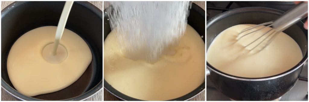 Pour the fresh liquid cream into a saucepan. Add the granulated sugar.
