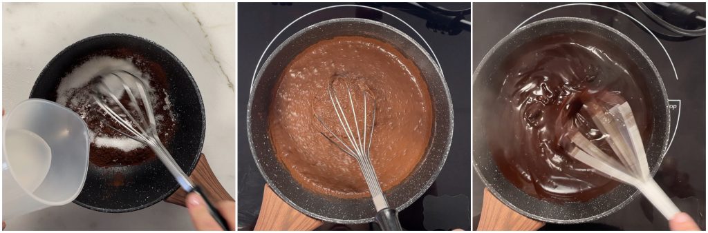Add cold water to the powders, it’s important that it’s cold to prevent lumps from forming in the mixture.