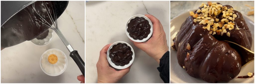 After about 8 minutes of cooking, the pudding will be dense enough to be transferred into the molds you have chosen.