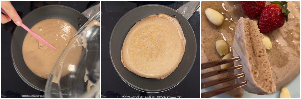 The protein powder pancake can be stored in the fridge for up to two days. However, I recommend preparing and consuming it immediately.