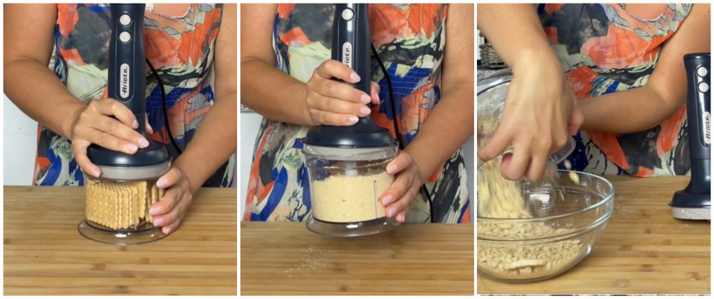 Once the biscuits have absorbed the butter, pour the mixture into the springform pan and press to level the base.