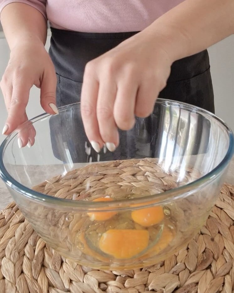 In a bowl, beat the eggs with a pinch of salt, then add the yogurt.