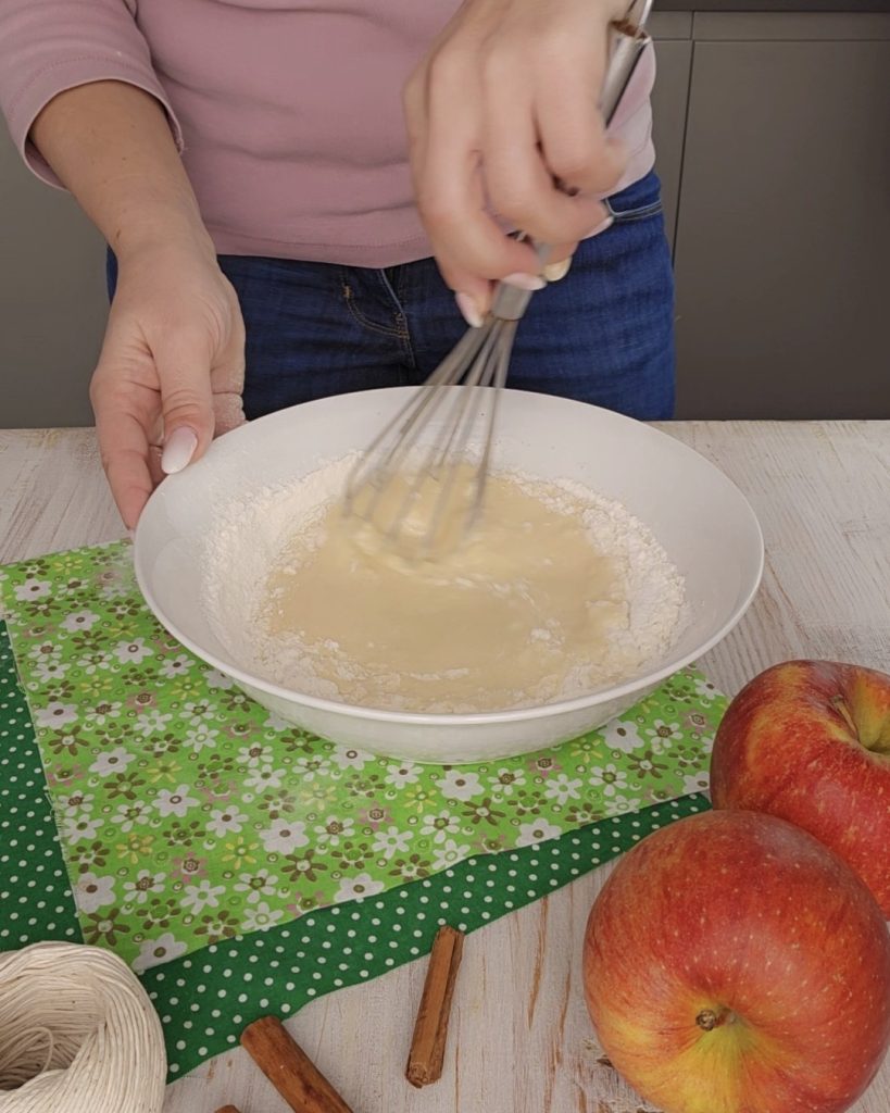 • Peel an apple and cut it into very thin slices or grate it, then add it to the batter.