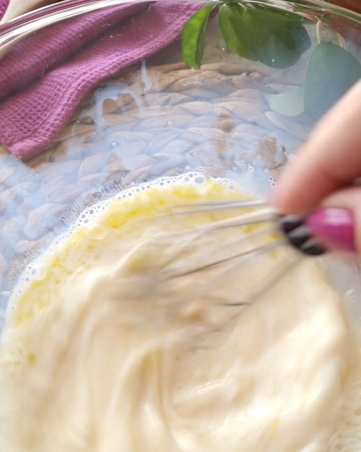 In a large bowl, beat the eggs, add the milk and a pinch of salt, then sift the flour and add it to the mixture gradually.