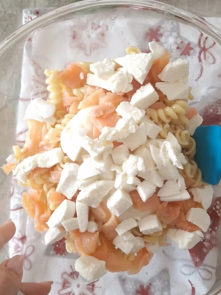 About today’s baked pasta with salmon and mozzarella, I can tell you they are super quick to make: cook the pasta, leaving it slightly al dente, then mix everything raw, a nice sprinkle of cheese, and off into the oven for a few minutes. If you have more time available, you can make the béchamel at home, and if you don’t like it, you can use cooking cream, making this main dish even easier to prepare.
