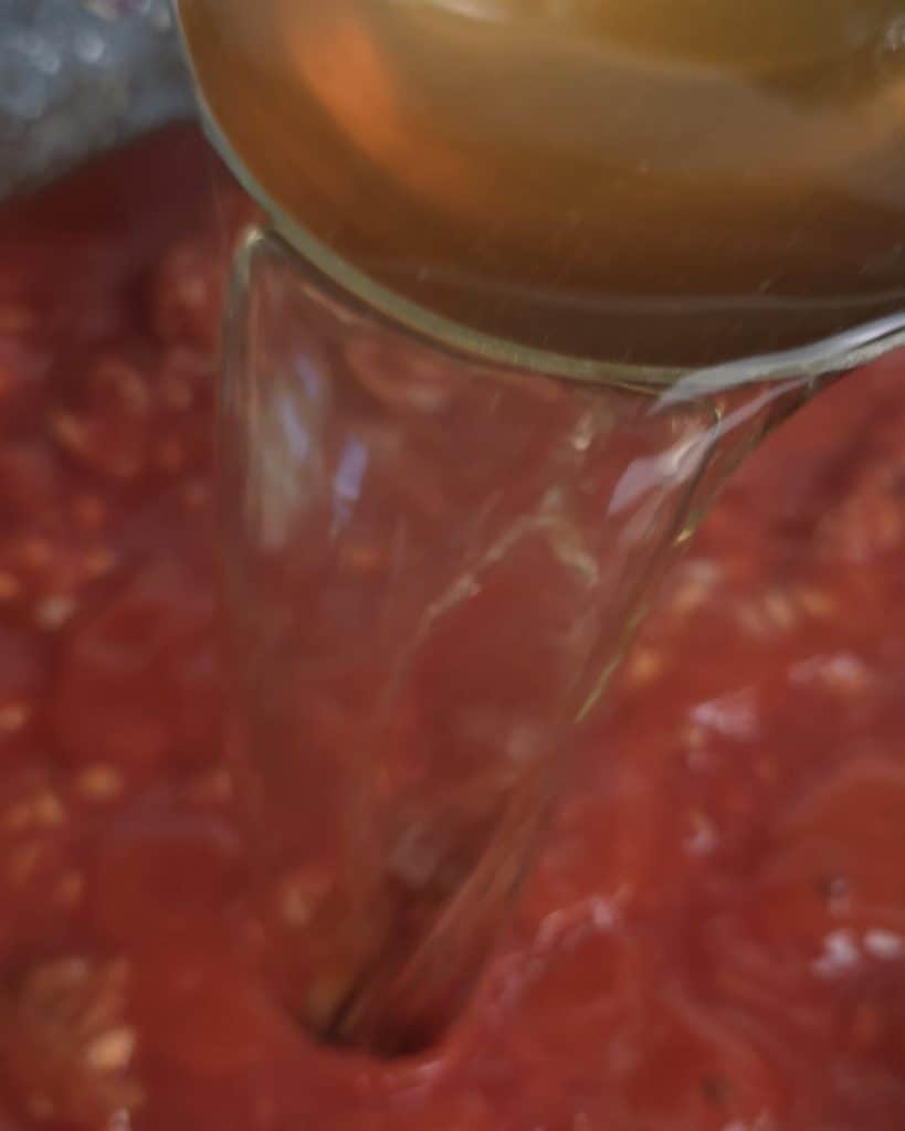 Then pour in the tomato passata and a ladle of broth.