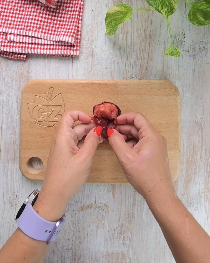 To best season them, add a grating of lemon zest, a pinch of salt and a sprinkle of pepper; if you prefer, add some fresh herbs. Bresaola has always been one of my favorite cured meats — try also the bresaola roses with cheese or the Grana baskets with arugula and bresaola. Bresaola tortelli are a perfect bite for any occasion, even at Easter. Save the recipe and let me know if you liked it! Don’t forget to follow me on Facebook and Instagram to stay updated on my latest news.