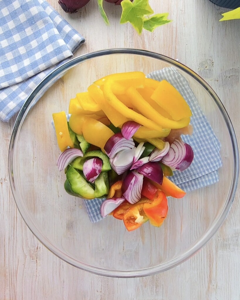 Chicken strips au gratin, easy and quick recipe, “main and side dish together. What more could you want!” Colorful and tasty, but also try the chicken strips with vegetables and the lemon chicken strips. The recipe is perfect for a quick lunch, it’s really fast, just cut the chicken breast into strips and mix it with vegetables: peppers and onions, put everything in the air fryer with the addition of breadcrumbs and Parmesan, few ingredients and lots of flavor! Simple and genuine, it will be loved by the whole family! Make sure to save it among your favorites, and if you like my recipes, follow me on my social channels Facebook and Instagram