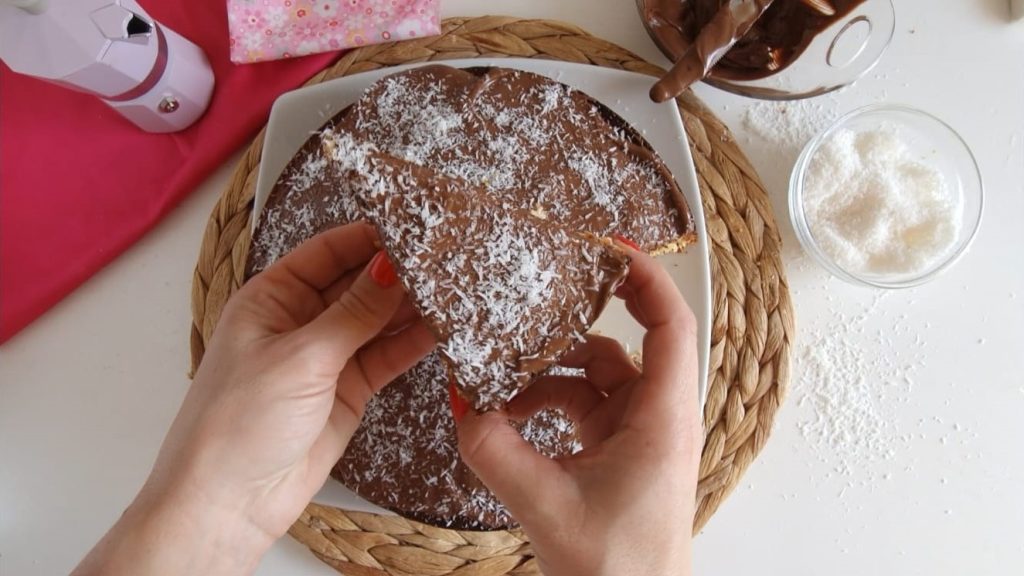 • Once the cake has cooled, garnish with Nutella and grated coconut.