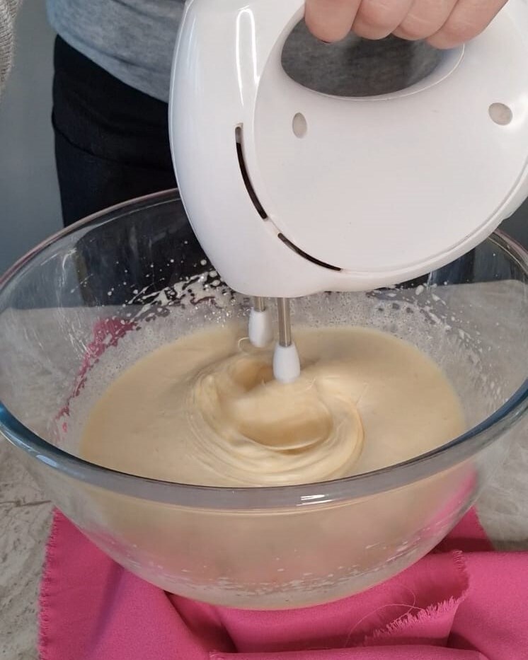 • Whip the mixture until it becomes nice and frothy, which will take about 5 minutes.