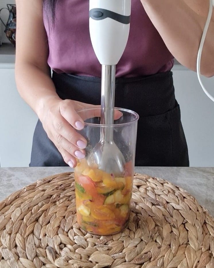 Creamy Vegetable Pasta is a fabulous and easy summer first course! It is pasta dressed with a mix of vegetables sautéed with onion and olive oil, all blended and topped with plenty of feta cheese. If you don’t like it, you can easily omit it or replace it with another cheese. I suggest you try the pepper cream pasta and the zucchini and salmon gnocchi and also the feta and cherry tomato pasta, three delicious, succulent, and seasonal first courses.
