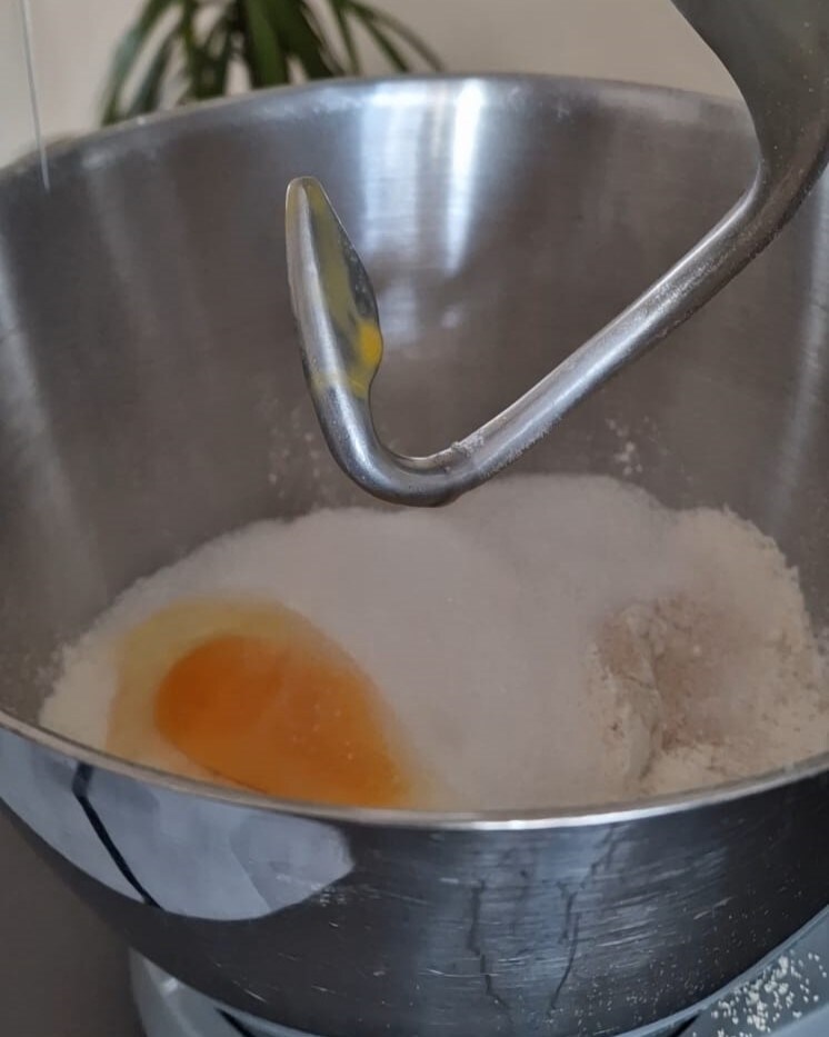• Combine the yeast with the flour and sugar, then pour in the lukewarm milk (be careful not to use boiling milk) and start kneading, by hand or with the stand mixer, then add the egg and the oil in a thin stream.