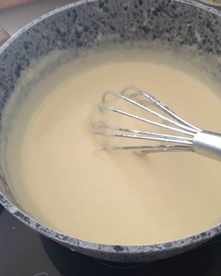 Heat on the stove and cook over low heat. Stir with the whisk to avoid lumps until the mixture thickens. At the end of cooking, remove from the heat and let it cool completely in a bowl covered with plastic wrap.