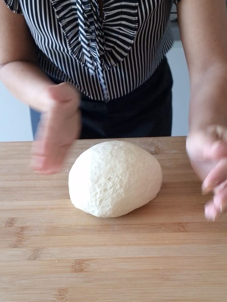 • After resting, roll out the two dough balls into discs with a rolling pin.