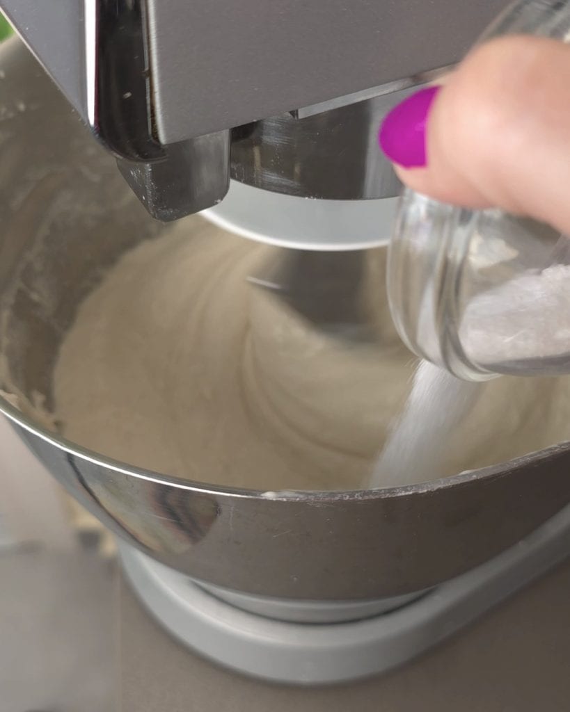 • After the resting time, add the yeast, and after a few seconds, add the salt.
