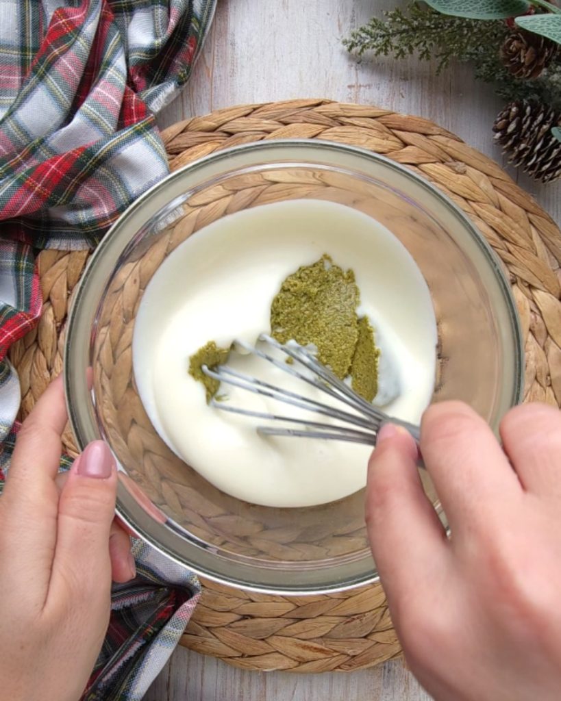 • It will take about 10 minutes for the béchamel to thicken, and once cooled, you can add the pesto, stirring adequately.