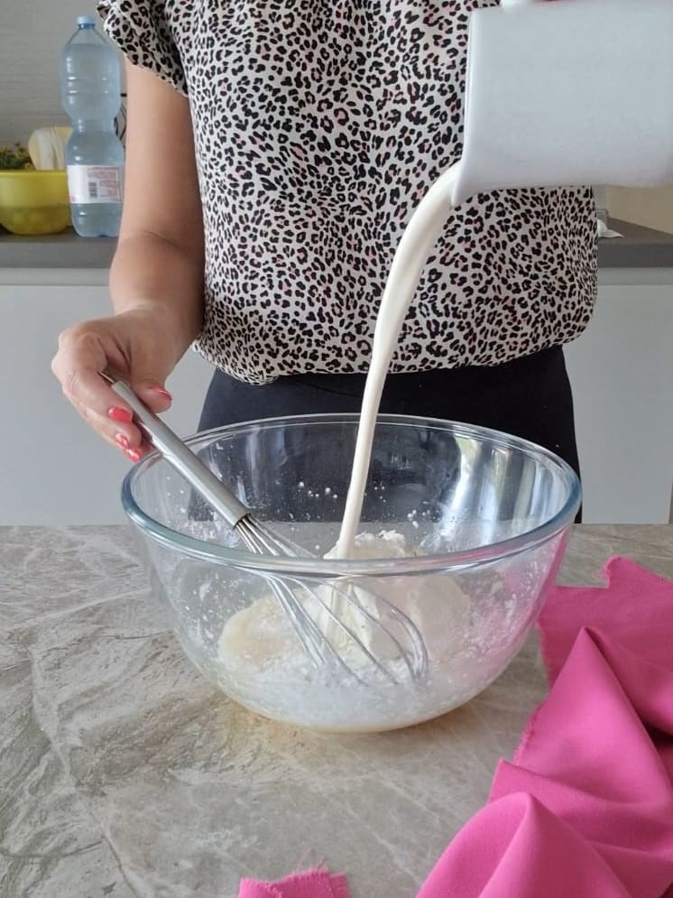 In a bowl, put the eggs, powdered sugar, and then the mascarpone.