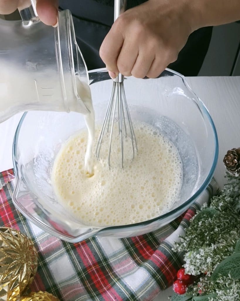 In a large bowl, combine the egg yolks with the sugar and whisk.