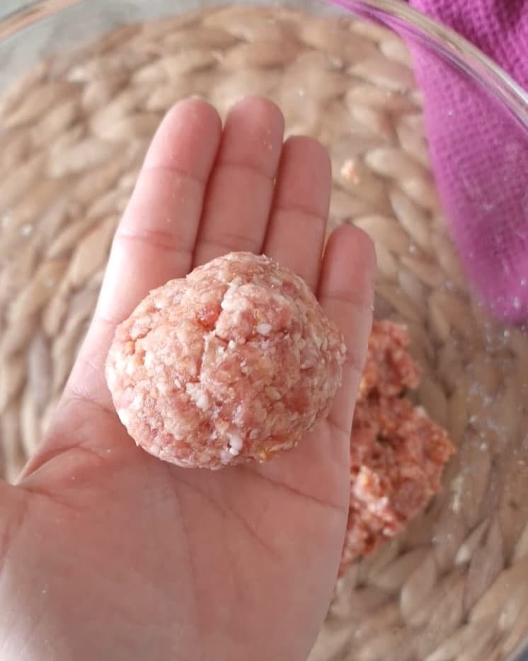Mix well with your hands until all the ingredients are combined, then shape the meatballs and set aside.