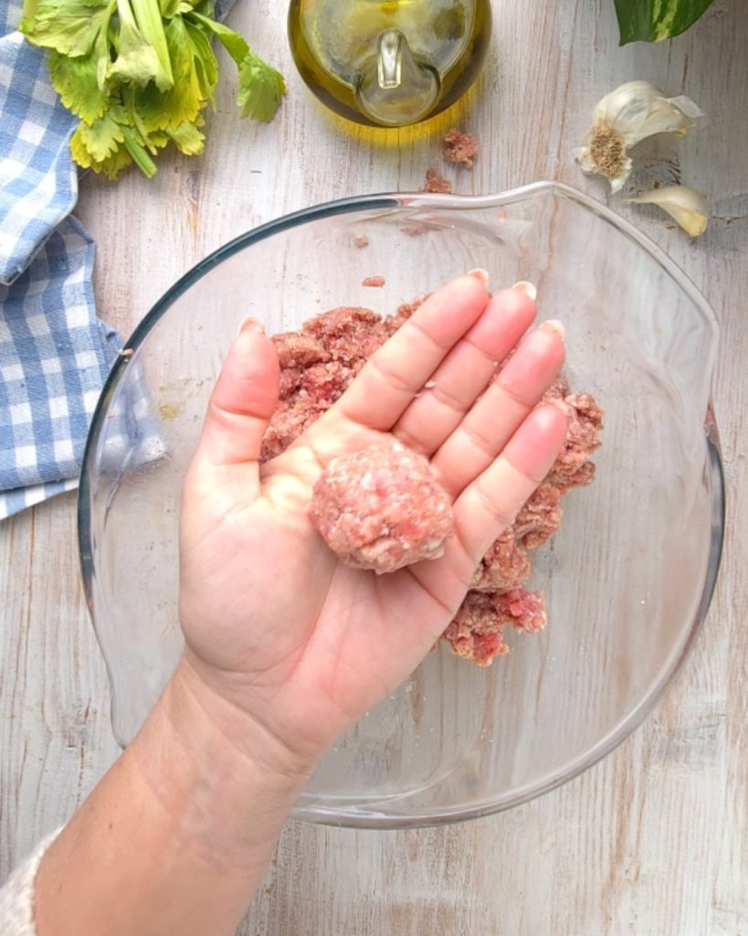 In a large bowl, place the ground meat, egg, salt, grated parmesan, breadcrumbs, and milk if needed, knead well with your hands until all ingredients are combined.