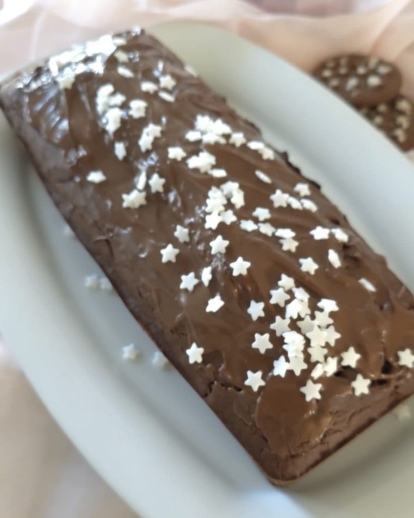 The milk and cookies pound cake is a heavenly, delicious, and enveloping dessert, very versatile. If you prefer, you can use leftover cookies in the pantry for the decoration. Let your imagination run wild; I used Nutella because I love it, but you can replace it with melted chocolate or glaze without cream and add shredded coconut or chopped hazelnuts.