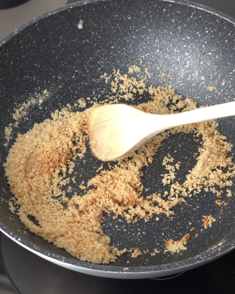 • Mix everything together and as a final touch, add the toasted breadcrumbs, serve hot and stringy.
