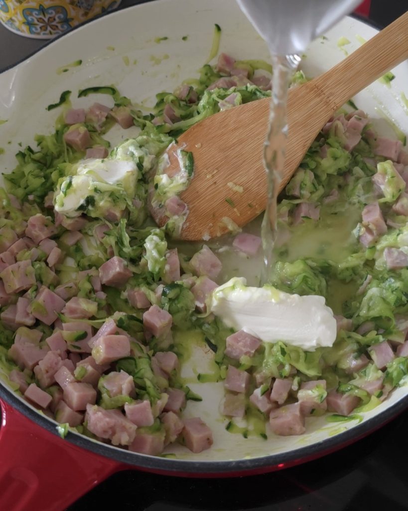 How to Make Pasta with Zucchini, Cooked Ham, and Philadelphia