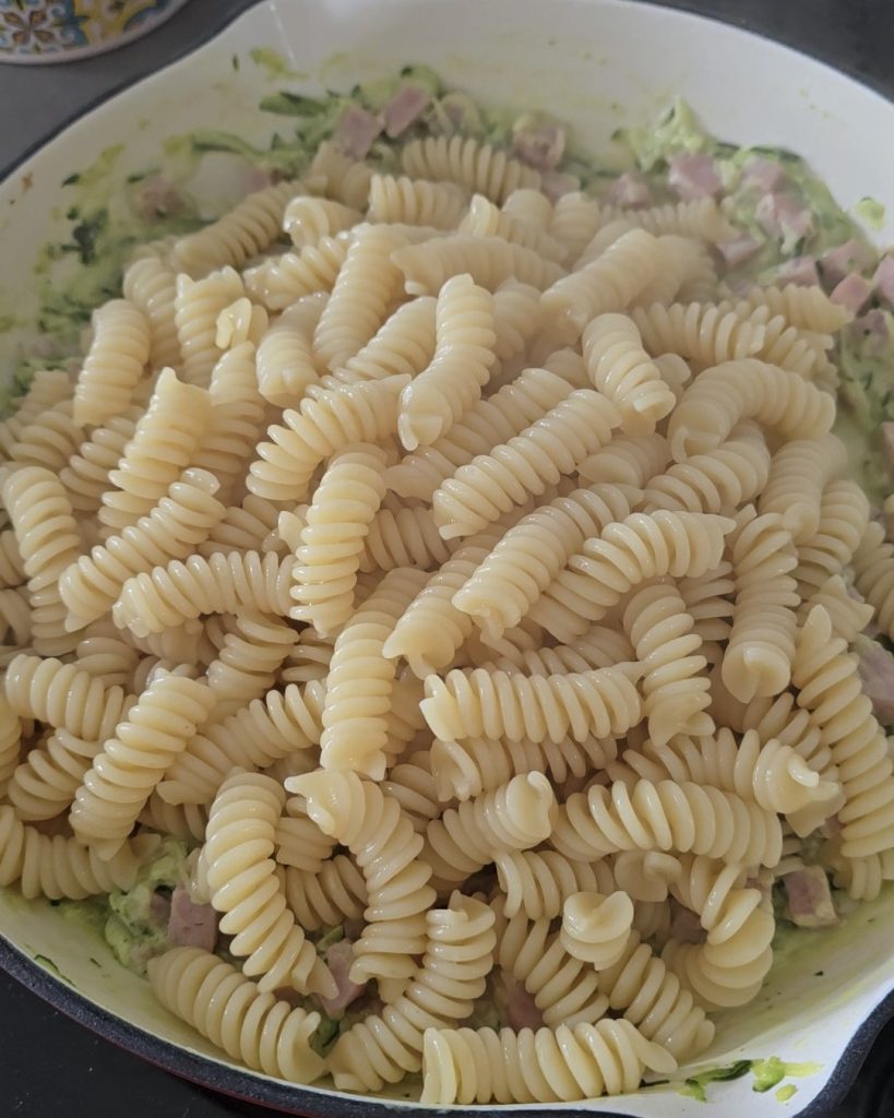 Pasta with Zucchini, Cooked Ham, and Philadelphia