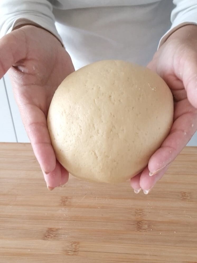 Transfer the mixture to the work surface and knead to form a dough. Cover with cling film and let it rest for 40 minutes in the refrigerator. Heat the milk with vanilla, once boiling, turn off and let cool.