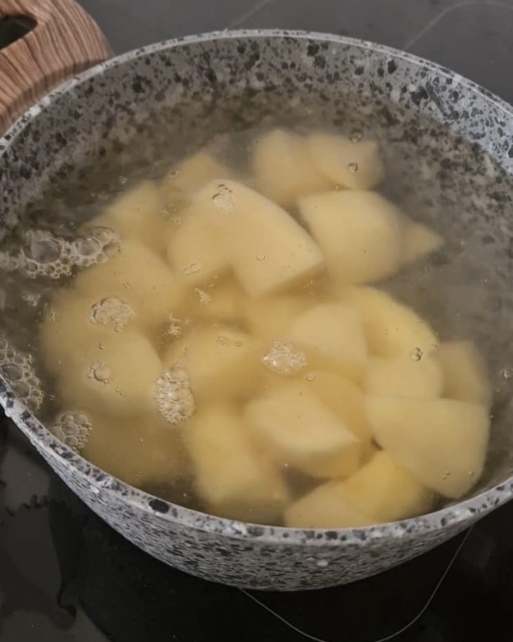 Peel the potatoes and cut them into large cubes, then boil the potatoes in plenty of salted water.