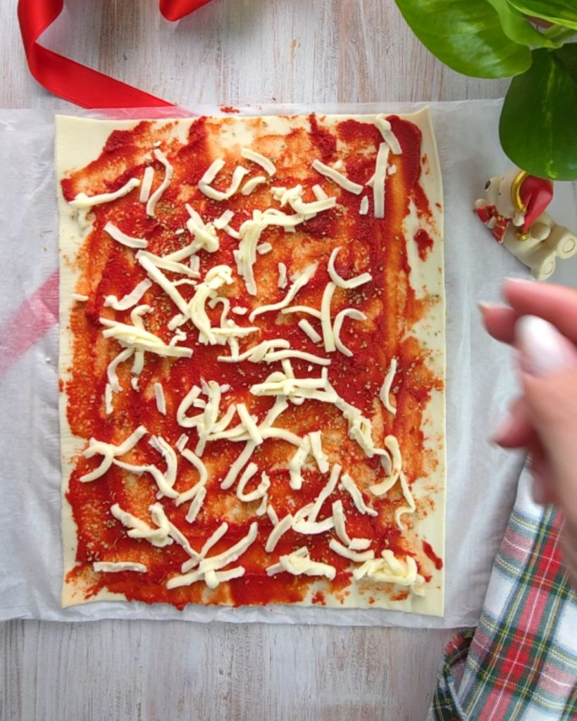 Puff Pastry Sticks, the perfect finger food for the holiday table. They are also ideal to include in the Christmas lunch menu, these tasty sticks resemble puff pastry twists with Philadelphia and bacon, but in this case, they have the shape of the classic Christmas stick. I propose two versions, one with tomato and mozzarella and one with pesto.