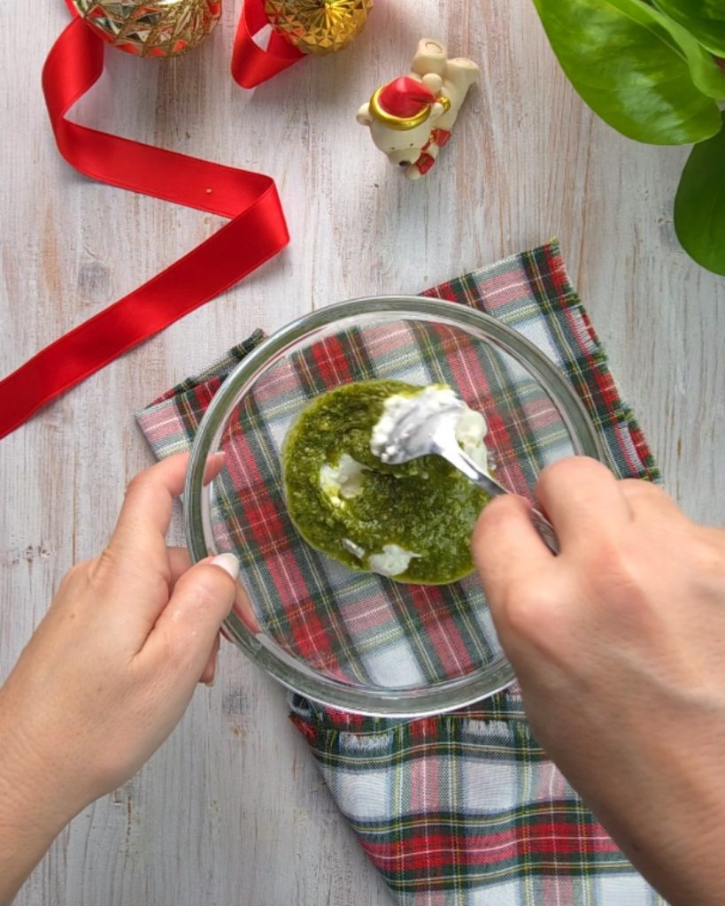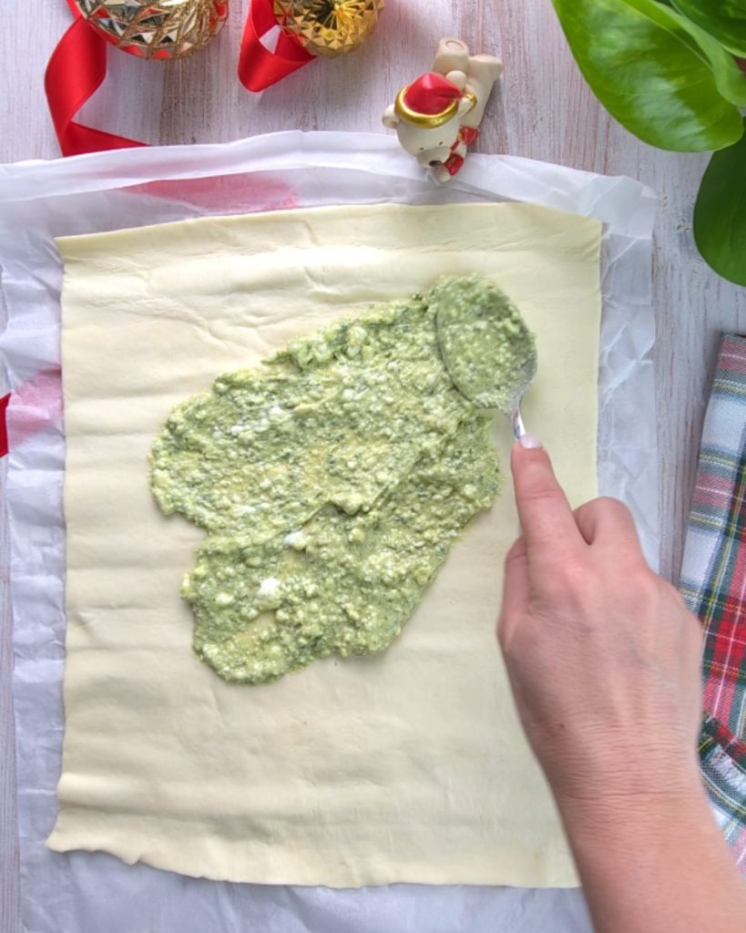 • Take the second roll of puff pastry and fill it with stracchino mixed with two tablespoons of pesto.