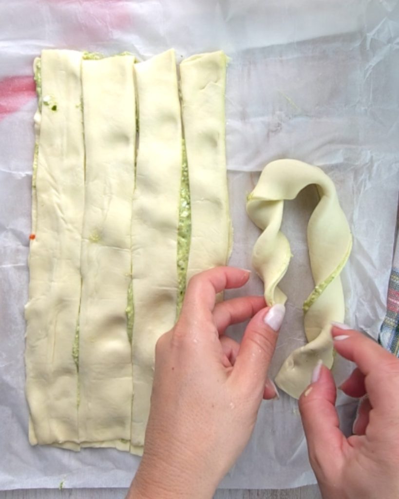 • Twist all the pastry strips into a spiral and finally give them the typical shape of a Christmas stick.