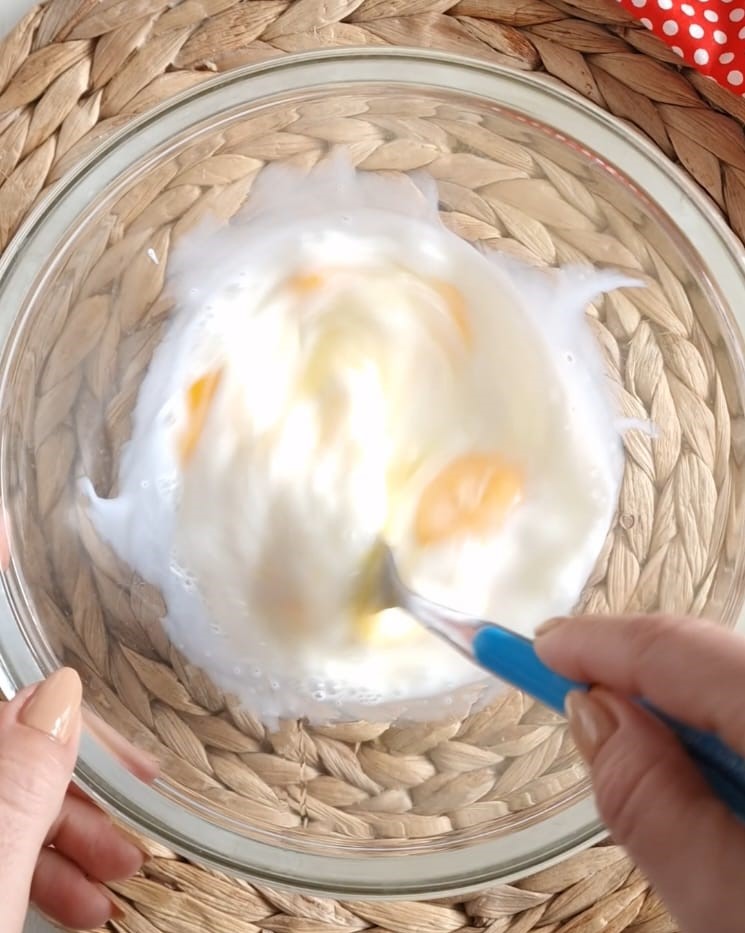 In a bowl, break the eggs and add the milk and salt. Beat the eggs with a fork.