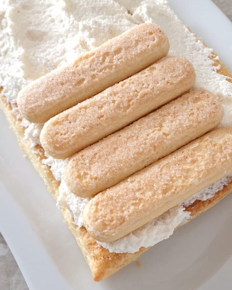 The recipe is made with puff pastry, coconut cream, and ladyfingers. If, like me, you love simple and quick desserts, you absolutely have to try this delight.