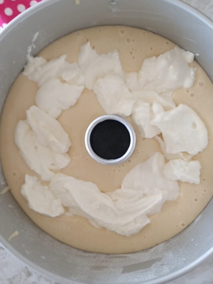 Pour the obtained mixture into a greased and floured bundt pan, 10 inches.