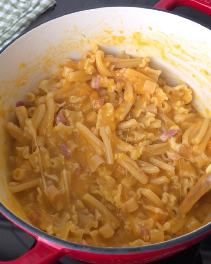 Risotto-style Pasta with Pumpkin is a simple recipe and truly irresistible comfort food. The preparation is similar to pasta with sausage and potatoes. If you love pumpkin recipes, you will also enjoy first courses with pumpkin. The particularity of the pasta with pumpkin lies in making the pumpkin creamy and cooking the pasta directly in the same pot while gradually adding hot broth. For a final touch of flavor, add scamorza cheese, but if you prefer, you can replace it with a creamy spreadable cheese like stracchino or Philadelphia. And to add crunch, you can omit the bacon and replace it with speck. For spices, let your imagination run wild: rosemary, sage, or basil, and for those who want to be bold, strong paprika, curry, or turmeric.