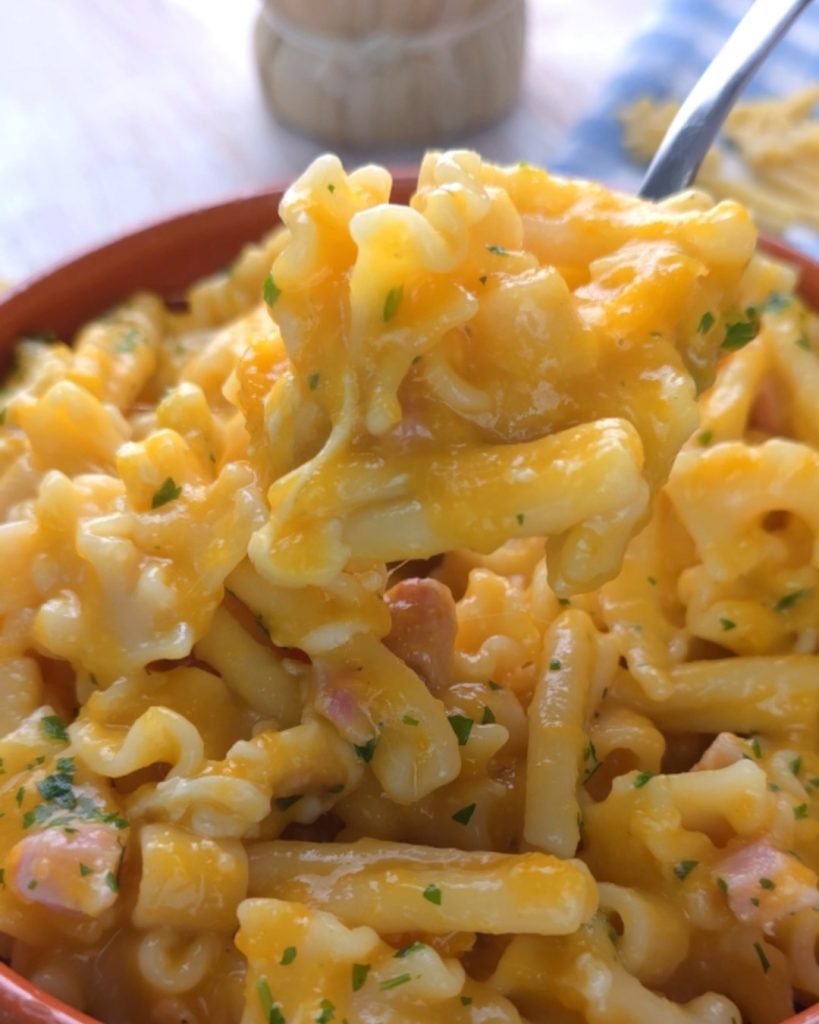 After the pasta has cooked, let it rest for 1 minute with the lid on, then add the scamorza cheese, stir, and serve hot with a generous sprinkle of fresh parsley.