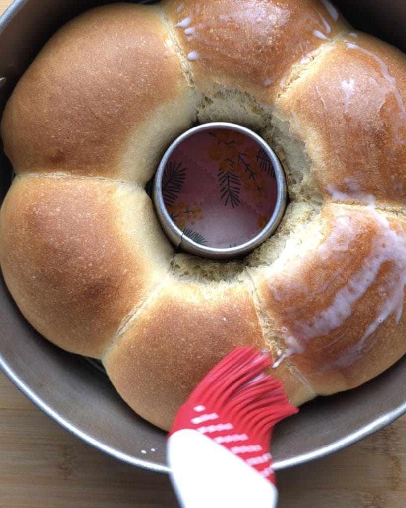 • Let it rise again for another 30 minutes, bake at 356°F in static mode for about 35 minutes. Remove from oven and brush with milk twice.