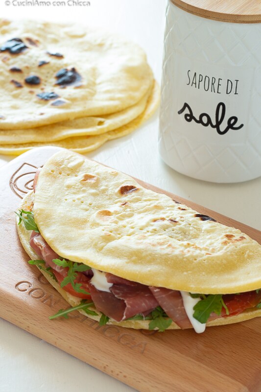 The semolina flatbreads are a simple and delicious preparation, ideal to serve as an appetizer or as a main dish for a dinner with friends. You can find my recipe for classic flatbreads here. If you want a lighter recipe, try the yogurt flatbreads version.