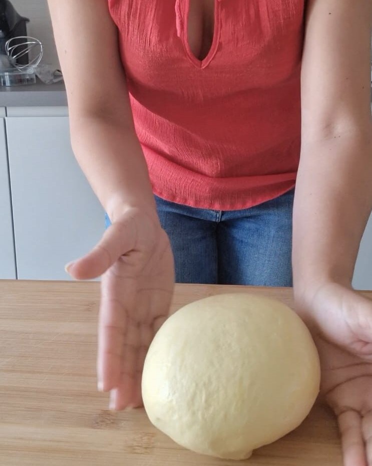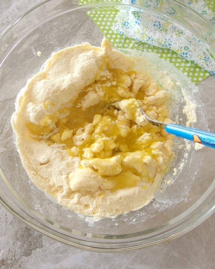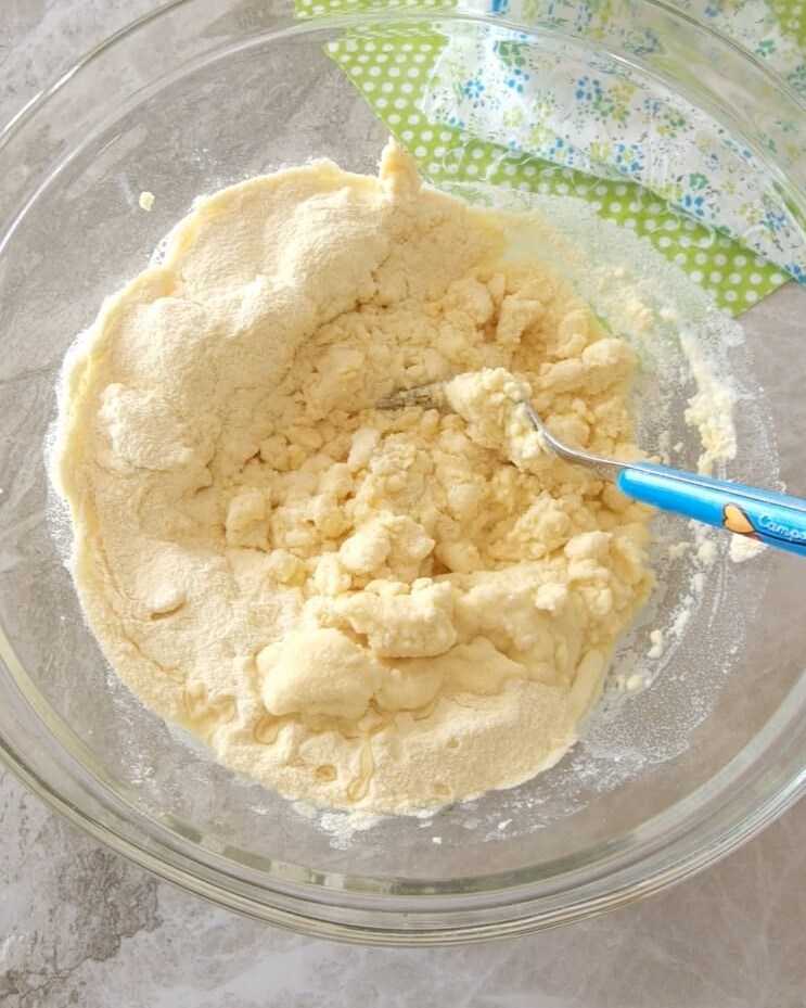 Transfer the mixture onto the table and continue kneading until it becomes a soft and compact dough.
