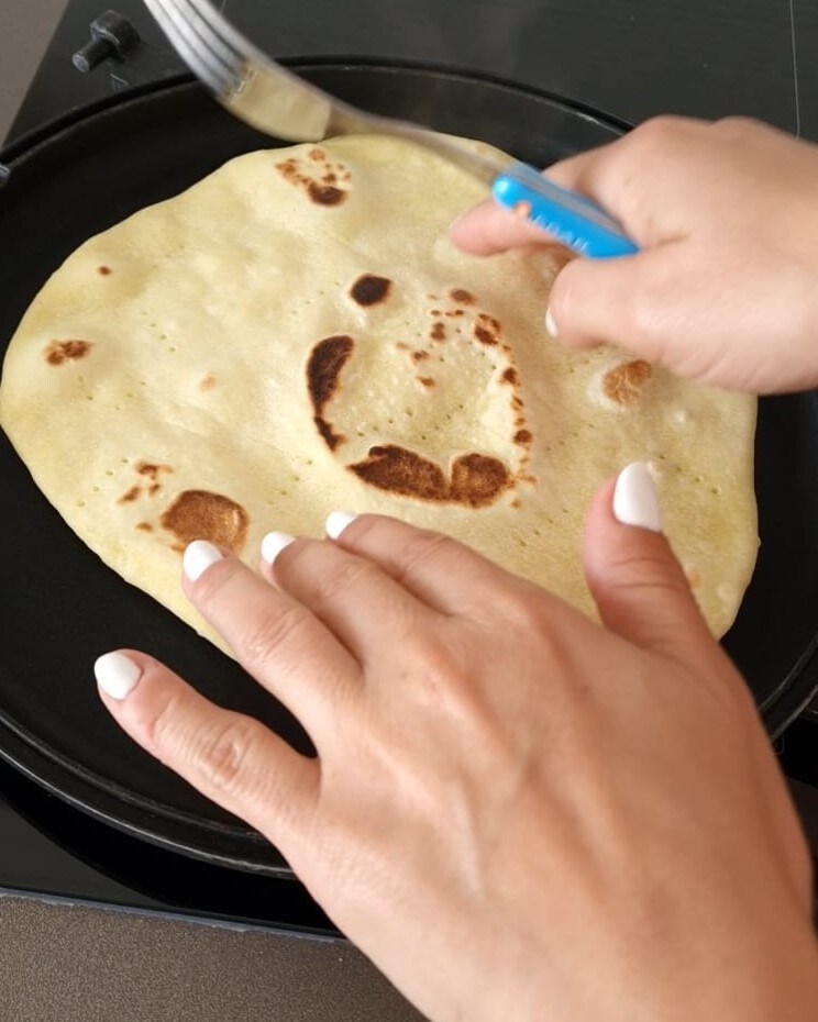 As the last step, cook the flatbreads on a hot griddle or in a well-heated non-stick pan.