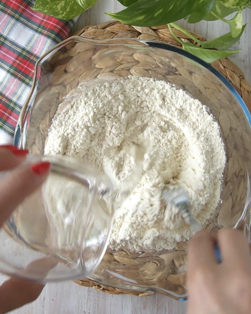 • Incorporate the yogurt, egg yolks, and aroma. At this point, mix well first with a fork and then with your hands. Once you’ve obtained a compact dough, transfer it to a bowl and let it rise for 2 hours in the turned-off oven with the light on. (or in a warm environment).
