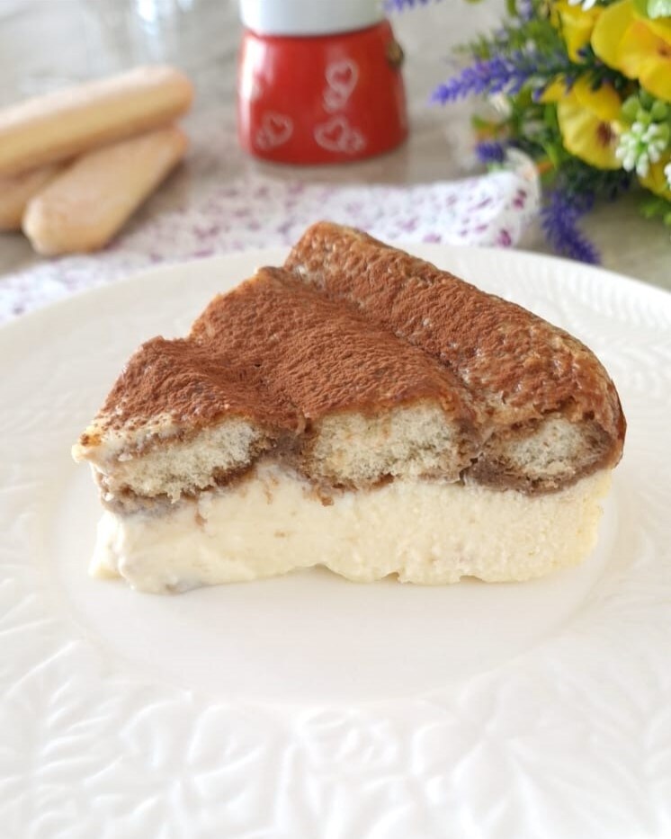 Baked tiramisu cheesecake is an easy and delicious spoon dessert. It is prepared with the addition of the classic ingredients of tiramisu: a base of ladyfingers and a cream with eggs and mascarpone, it is a delicious variant of the classic tiramisu. The baking gives it a stronger flavor and makes it more stable, once baked it is sprinkled with plenty of cocoa, it is really delicious and very easy to make, if you try it let me know, a kiss Chicca.
