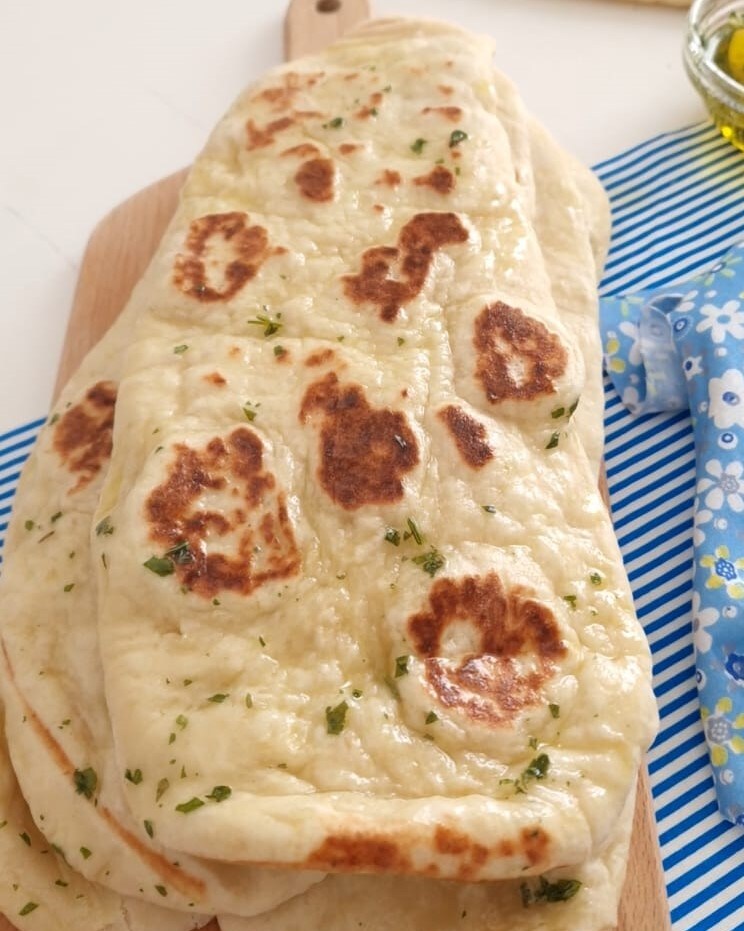 The Turkish Bread cooked in a pan is easy, delicious, and quick to make. The Bazlama bread recipe is very easy, ideal to be served with chickpea hummus, meats, and soups. The preparation is simpler than traditional homemade bread. In our family, we seasoned it with simple oil and chopped parsley, we literally devoured it, so please, make a double batch and you won’t regret it!