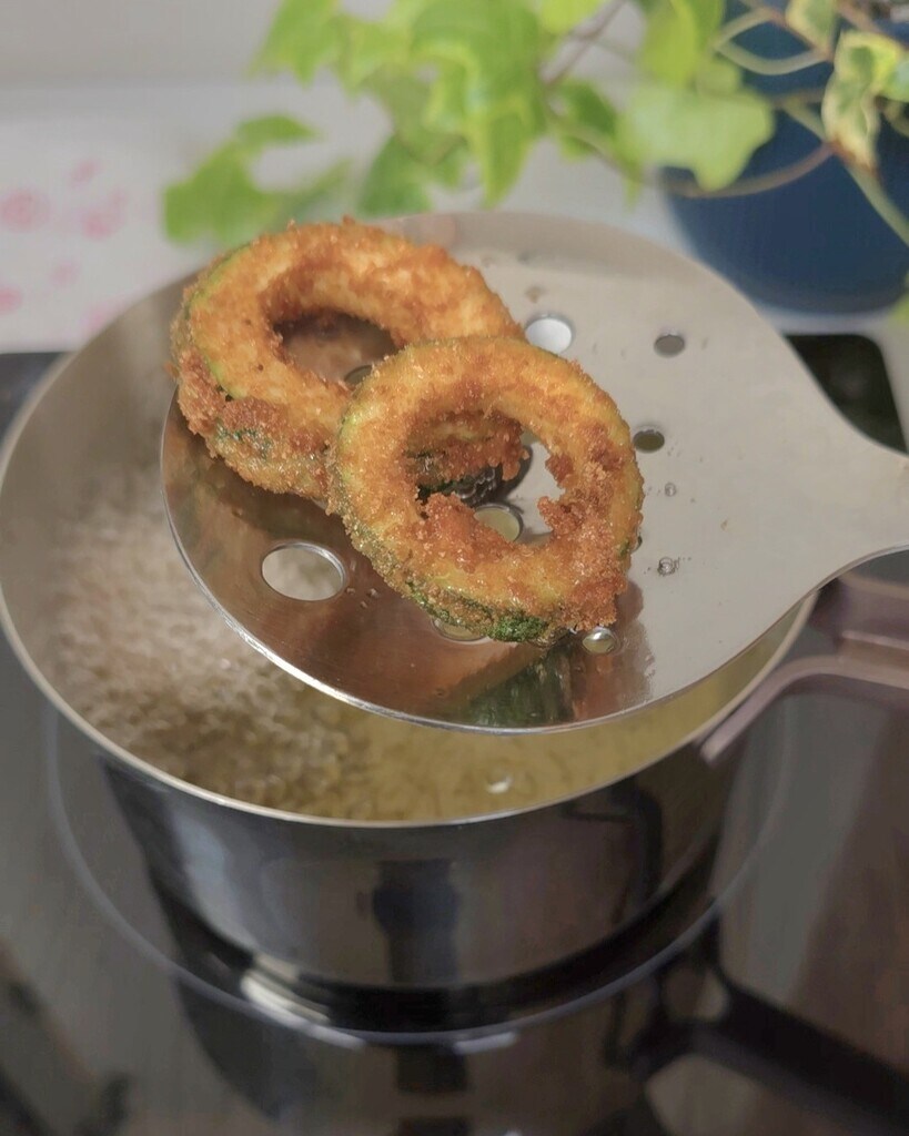 Zucchini rings easy and quick recipe. They can be fried or cooked in an air fryer. Also try the cheesy zucchinis and zucchini bundles, which are great appetizers finger food. Zucchini rings are a simple but tasty idea. It’s a super simple recipe, just slice the zucchini into rings and dip them in eggs and then in breadcrumbs and into the air fryer for a few minutes.