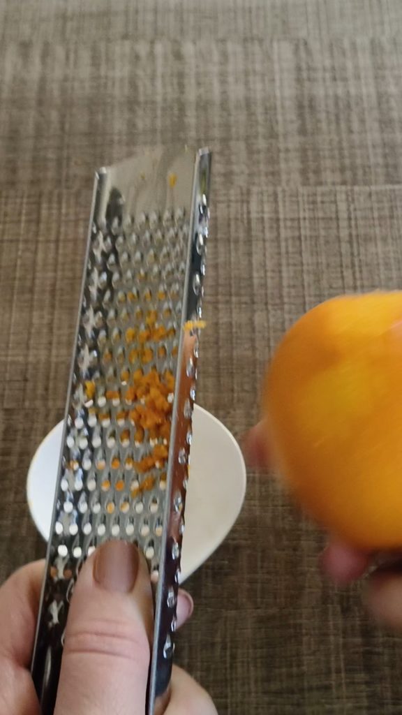 Wash the orange, take the zest and cut it in half. Strain the juice.