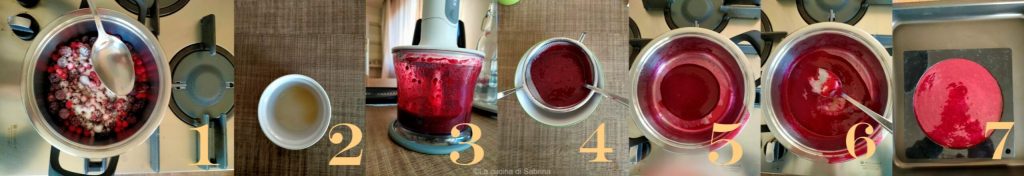 –1 Heat the berries with a tablespoon of water and sugar over low heat, and as soon as it completely dissolves, remove from heat and blend. 2 Soak the gelatin while it hydrates, 3-4 strain the puree to remove the seeds.