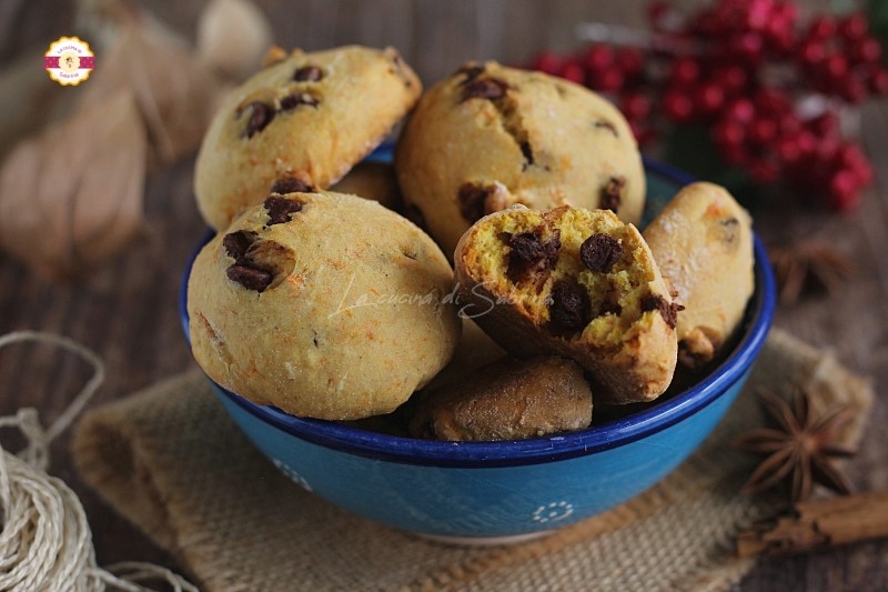 Soft and spiced, they encapsulate all the scent of autumn in a few bites: the pumpkin makes the dough tender, the orange brightens it with a citrus note, and the chocolate chips and cinnamon complete it with the right taste contrast.